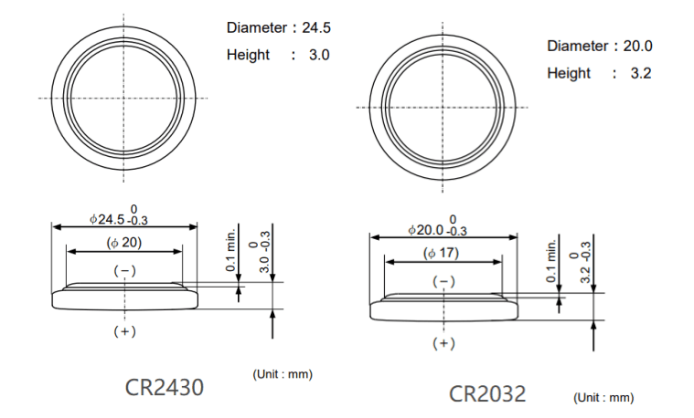 This inch difference may not seem significant, but the battery compartments of devices are designed for specific dimensions. For example, if a device originally uses a CR2032 battery with a 20 mm diameter, forcing a CR2430 (24.5 mm diameter) into the compartment will not fit and may even deform the compartment. Conversely, if a device originally uses a CR2430 battery, the CR2032 will move around in the compartment due to its smaller diameter, resulting in poor contact and malfunctioning of the device. Therefore, based on their dimensions, the two are not interchangeable.