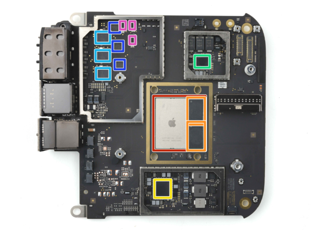 - Orange: Micron MT62F1G64D4AS-026 XT: C 8GB LPDDR5 SDRAM memory